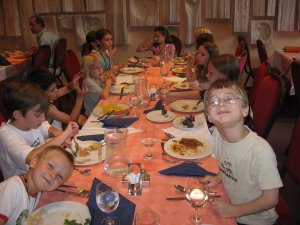 The kids were in their own program all week, run by some wonderful people, who did a sort of mini VBS for them. Above is a picture of Kerith (Lydia is at the end of the table.) with most of the other CRM kids in the hotel dining room. All our children benefited from playing with kids in their same shoes — living in a culture that is not their home culture.