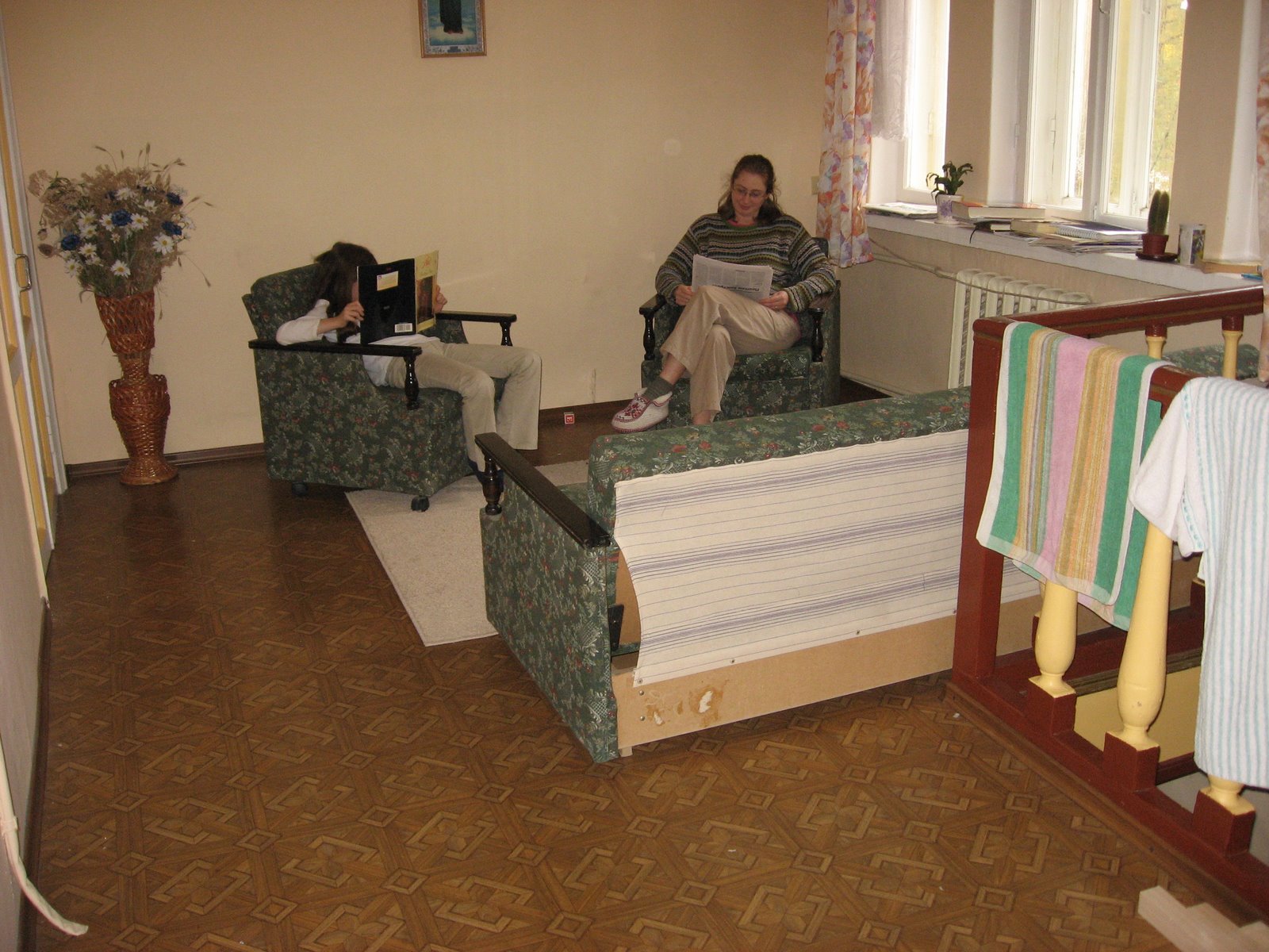 The hall is huge: nearly 400 square feet, so we can treat it like another room. So for a mere $1000/month (mere!), we get 4 large rooms, plus this hall, plus a decent kitchen. That’s a steal around here.