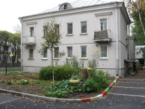 What I can show you so far is the look of the area around our home, which was a major factor in our deciding to move here. It looks very different from anywhere else in the city, more like a European town in some respects. And in fact, the houses here were built by German prisoners of war who were not released immediately after WW2. The first picture is of the side our our building. Our windows are the first three from the left.