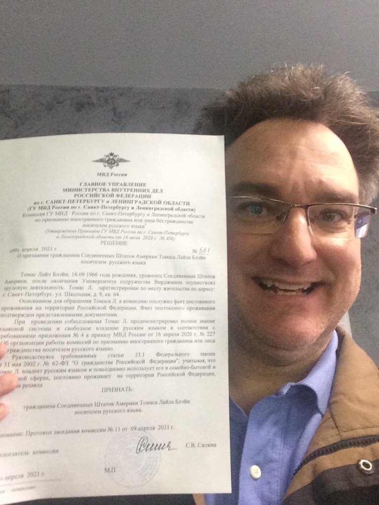 The original purpose of the provision to prove language fluency was for residents of former Soviet republics who were raised in the Soviet system and thus would obviously know Russian well. It was also for those whose parents or grandparents had been citizens of Russia. I had neither of these cards to play, so I played my mediocre hand: experience in Russia going back over 3 decades. But then I pulled out my surprise trump card: