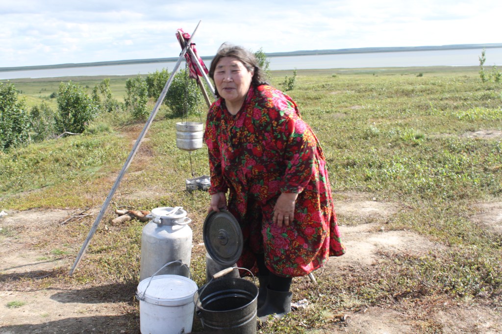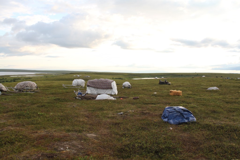 After another half hour or so we finally made it to the chum of Peter’s closest neighbor, Nina Vasilievna. Both Peter and Nina are on disability and so do not move their chums around or herd reindeer. We would have to wait until the next day to meet a real nomadic Nenet family. No one greeted us here, either. Igor said they could be slow to warm up, and though it took until the next day for us to feel like we had any traction with them, it ended up being an amazing introduction to the Nenet way of life.