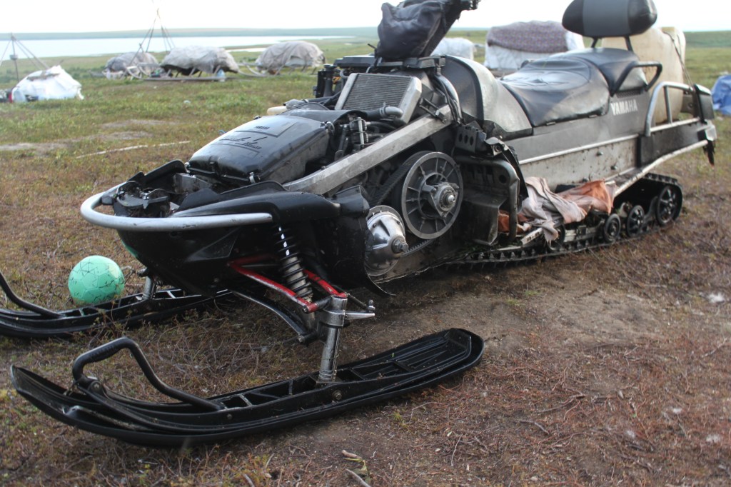 It’s so utterly quiet in this part of the world that even in town there was not a sound to be heard most of the time, except when a car went by. Otherwise, there were no machines, and we never saw a plane. In the tundra it’s even quieter. And on a tangent, alas, if it had not been for White Nights (even greater than in Petersburg), we would have gotten an amazing star show, since there is no light pollution anywhere to be found. So when out of the blue we heard a loud motor, both we and the dogs all took notice. Kerith ran outside in time to see a snowmobile tearing across the tundra way too fast, and arriving at our chum much too fast. Three young men stumbled off the machine, and two swaggered into the tent. In a place like this, even though your neighbors can be miles apart, everyone seems to know everyone. And, true to his reputation, Igor knew one of them from his childhood.