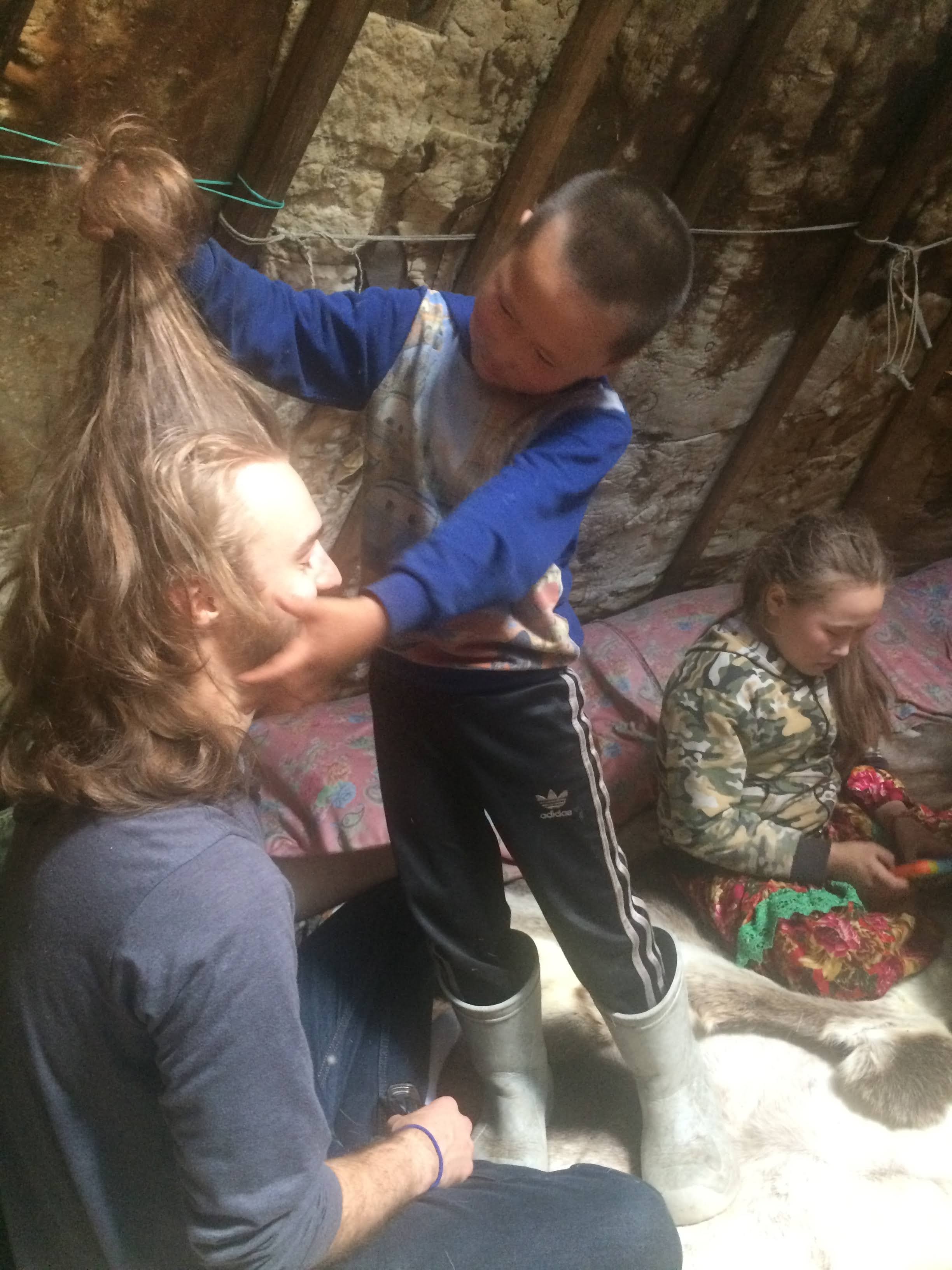 Two things about the family stood out to me. First was the fact that this was the only actual reindeer herders I met. Yegor had entrusted his herd (trivia moment: it turns out you can call them a bunch, mob, parcel, or a rangale) to a friend for the summer. He enjoyed telling me about life as a herder. They go south for the winter, a journey which takes 8 days, setting up and breaking down this very home every time – a task that takes only an hour and 20 minutes, respectively. He told me how you get to know each deer’s personality, how they hate mosquitoes as much as we do, and more.