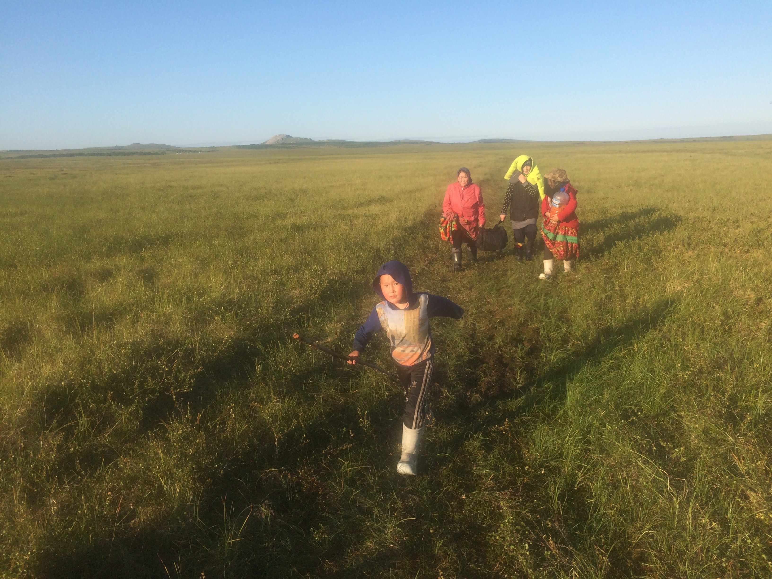 The trek to our next destination was arduous. The family we just left gave me and Kerith some galoshes to navigate the wetlands. Half way through, Irina told me she expected we were done with the soggy parts, and I changed back to my boots, but her memory must have failed her, and the terrain became extremely uneven, difficult to walk through, with heavy underbrush, and like a bog in places. Kerith stayed dry but rubbed his heel to an open wound, and so was in agony.